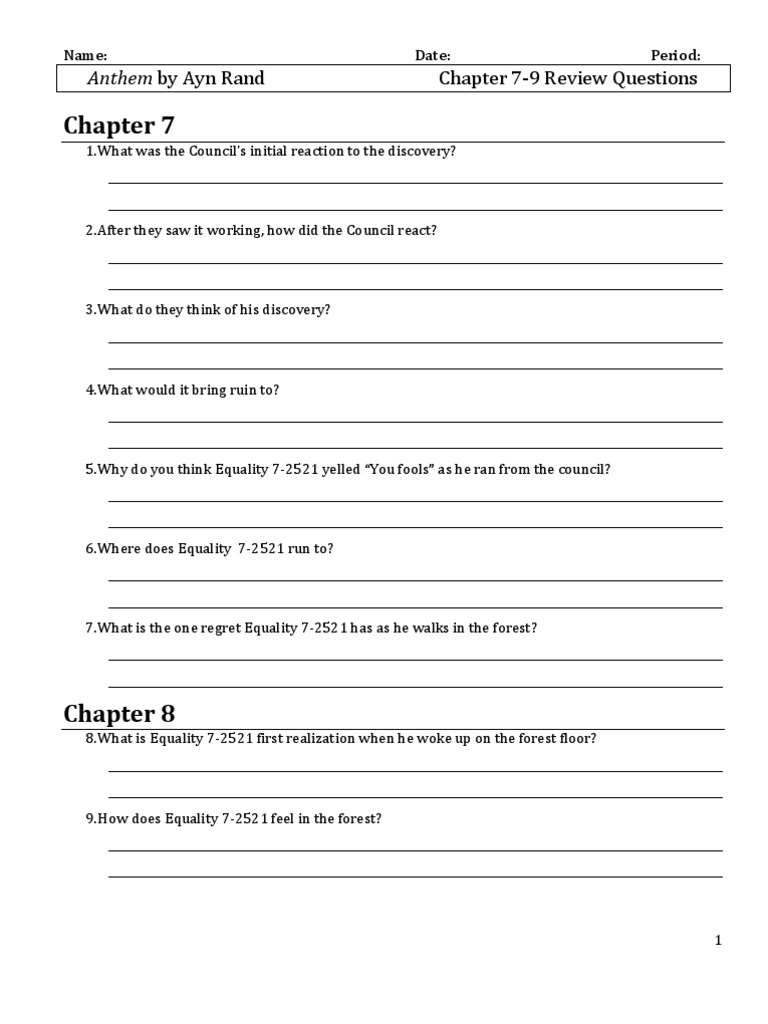 It is as if. Anthem by Ayn Rand - Study Guide. Payments to OCON or the Ayn Rand Institute eStore do not qualify as.